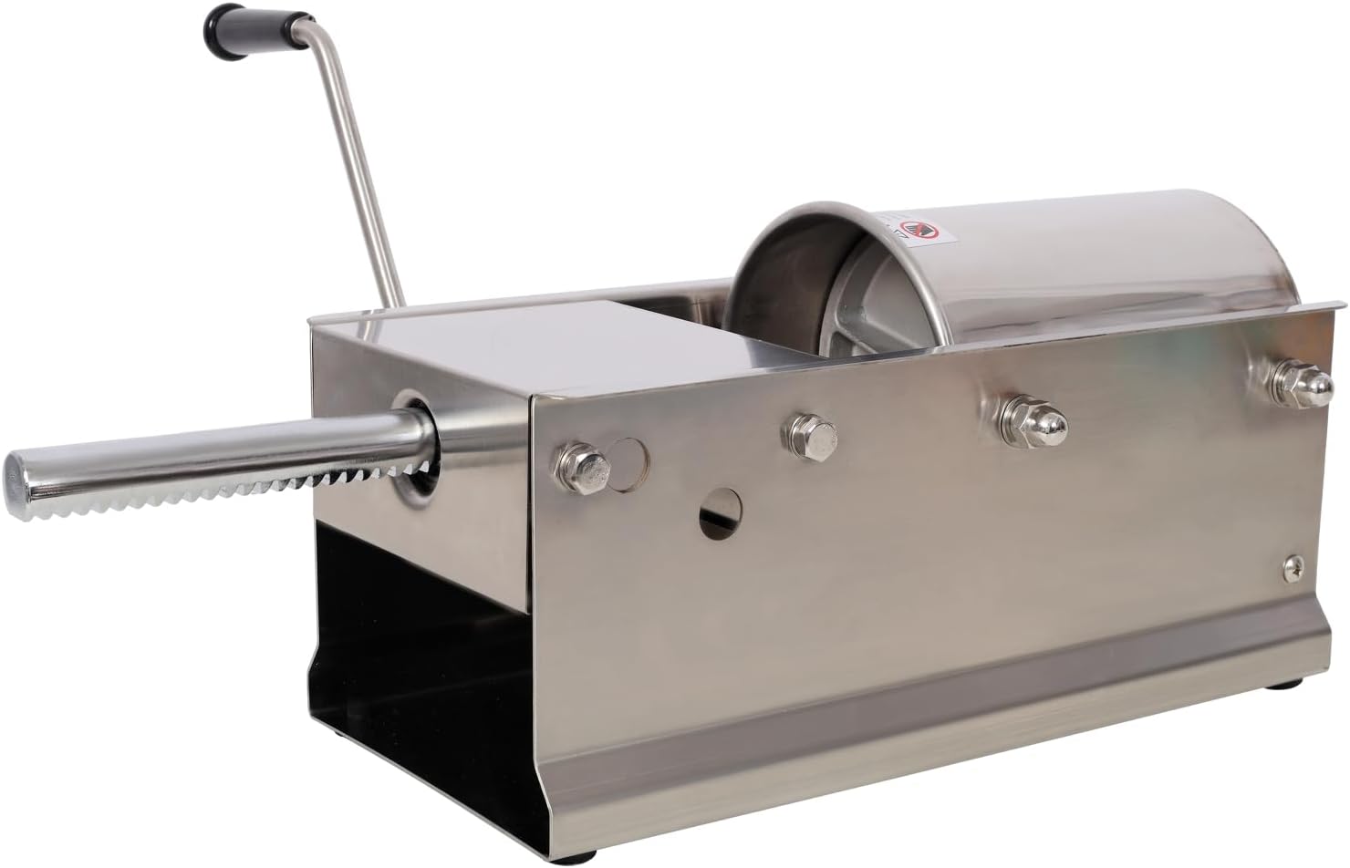 Material: Stainless SteelColor: SilverCapacity: 3L (7 lbs)Package Includes: 4PCS Filling NozzlesMounting Type: Horizontal DesignNotes: Food-grade material, stable base, easy-to-clean componentsEffortless sausage making meets food safety standards with this stainless steel sausage stuffer. The horizontal layout stabilizes the machine, helps reduceing tipping during operation. Food-grade silicone ensures airtight sealing, while four nozzles accommodate various sausage sizes. The 3L capacity minimizes refills, making it ideal for home and commercial use. Manual operation simplifies the process, and the design ensures long-term reliability. for sausages, hot dogs, and snack sticks with precision and