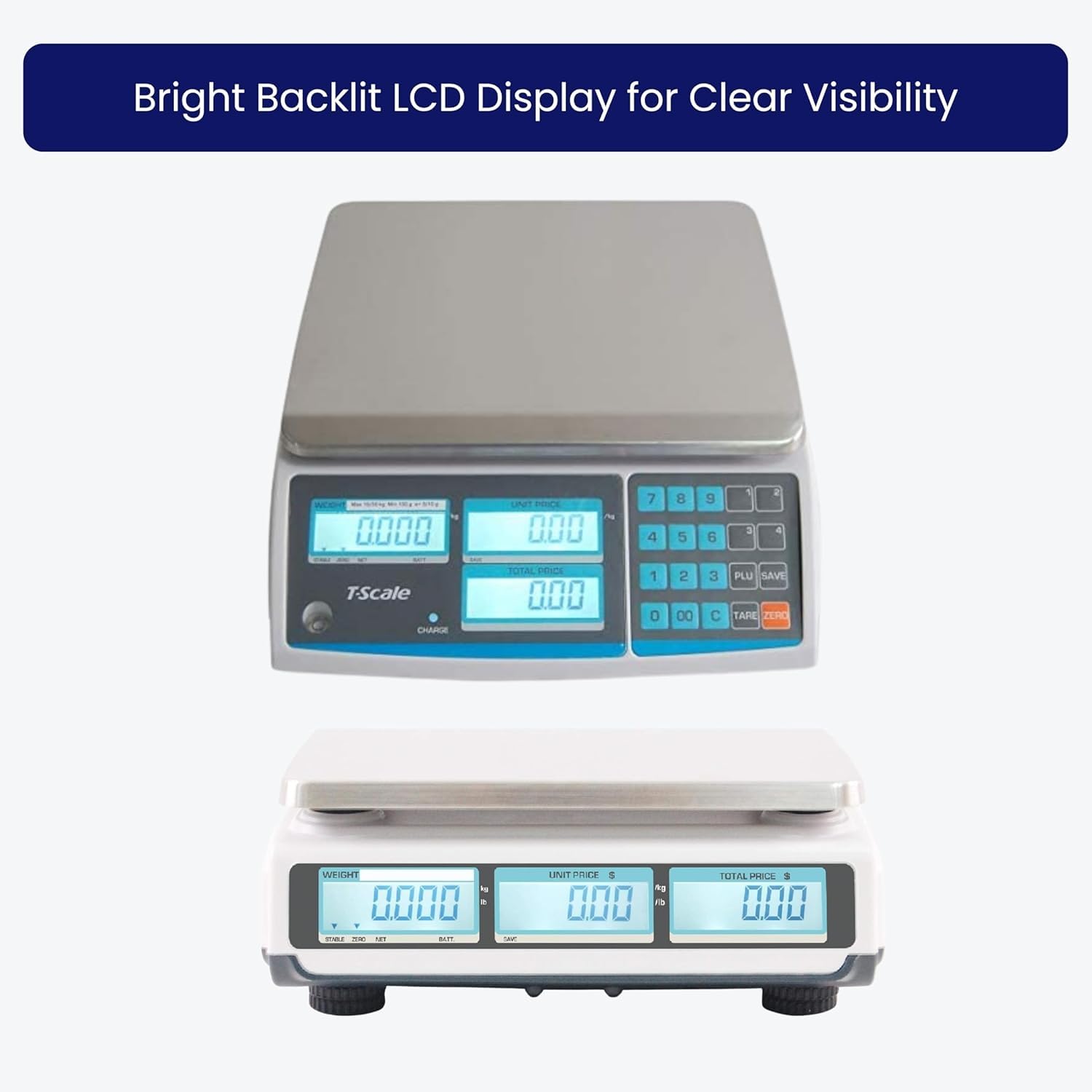 The Aquos ZTP Price Computing Scale delivers accurate weighing, fast price calculation, and legal compliance in a compact, retail-ready design. As a Class III NTEP Legal for Trade scale, it meets U.S. requirements for commercial transactions where products are sold by weight. Designed as a commercial digital scale and retail grocery scale, the ZTP is ideal for grocery stores, delis, butcher shops, bakeries, and farmers’ markets that require dependable performance day after day. The bright LCD backlit display ensures clear visibility of weight, unit price, and total cost for both operator and customer. Choose the pole display for customer-facing counters or the base display for space-saving workstations. A food-safe stainless steel platter supports easy cleaning and long-term durability. The intuitive LB/KG switch and simple controls make this price computing scale fast to operate—even in high-volume retail settings. Available in 30 lb and 60 lb capacities, the ZTP Series provides reliable, compliant weighing backed by Aquos—a trusted name in professional weighing equipment. Q1: Is this scale legal for commercial use in the USA? Yes. It is a Class III NTEP Legal for Trade scale, approved for selling by weight. Q2: Does it calculate total price automatically? Yes. This price computing scale displays weight, unit price, and total price. Q3: What capacities are available? The ZTP ntep legal for trade scale is available in 30 lb and 60 lb models. Q4: What’s the difference between base and pole display? Base display scale saves space; pole display scale provides customer-facing visibility. Q5: Is it suitable for food items like produce and meat? Absolutely. The stainless steel platter commercial price scale is hygienic and designed for food retail.