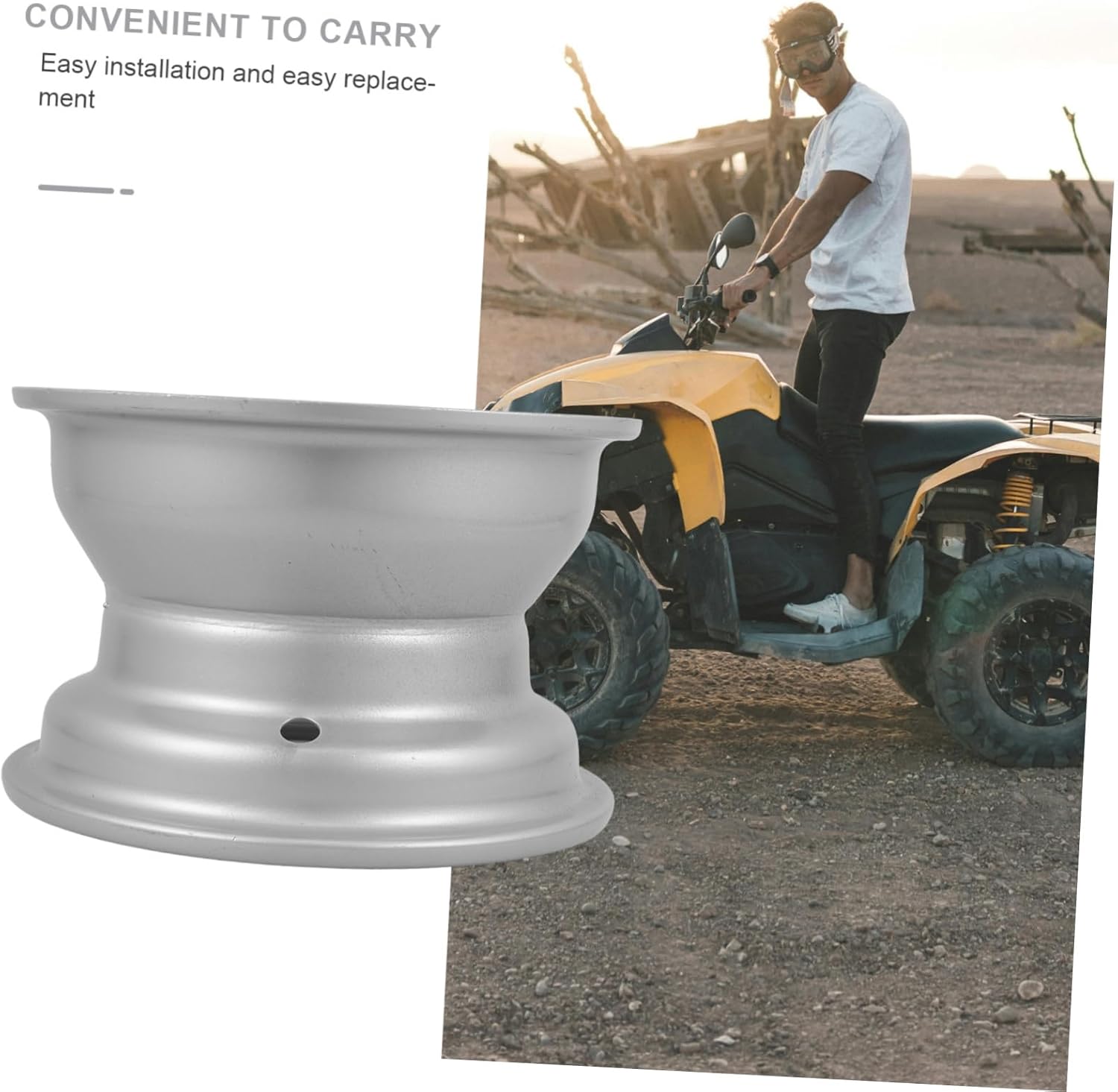 Package List 1 x ATV Wheel Rim Features -Model: 3 holes, 78mm in between hole centers, 200mm out diameter atv rim assembly -Size:20.00X20.00X13.00cm/7.86X7.86X5.11in 3 holes atv wheel rim -Color:Silver wheel rim go kart -Material:Iron 3 holes wheel rim -Made from reliable iron material, this wheel rim is and can be used for a long time go kart rim assembly. -Enhances stability. Provides better control and stability for your atv atv wheel rim. -ATV wheel rim is a nice motorcycle accessory for 50-125cc engine, ensuring a fit wheel rim with 3 holes. -Tire rim is high strength, wear-resistant, strong, a professional rim replacement part for atv atv wheel rim 3 holes. -Easy installation and replacement, the wheel rim is an ideal replacement go kart parts.Goods Descriptiongo kart rim The 3-hole wheel rim is specifically designed for ATV motorcycles with 50-125CC engines.3 holes wheel rim The iron material ensures durability and reliability, while the simple installation process makes it easy to replace worn-out parts