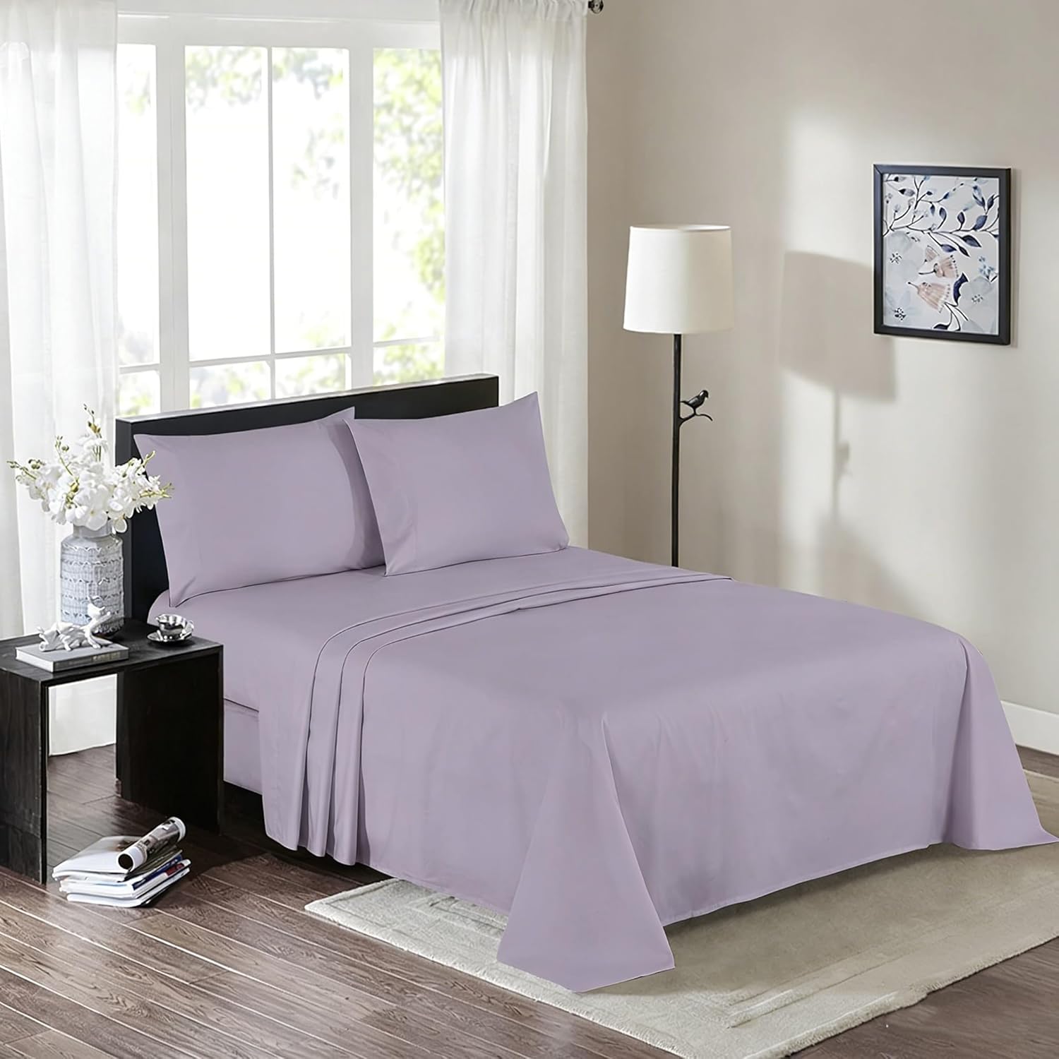 Twin Percale Bed Sheets, 200 Thread Count Cotton Polyester Blend Sheet Set,Wrinkle Free,Breathable,Crisp Refreshing Feeling, 60 Cotton 40 Polyester Cotton Rich Sheets 3 PC(Lavender Gray, Twin)